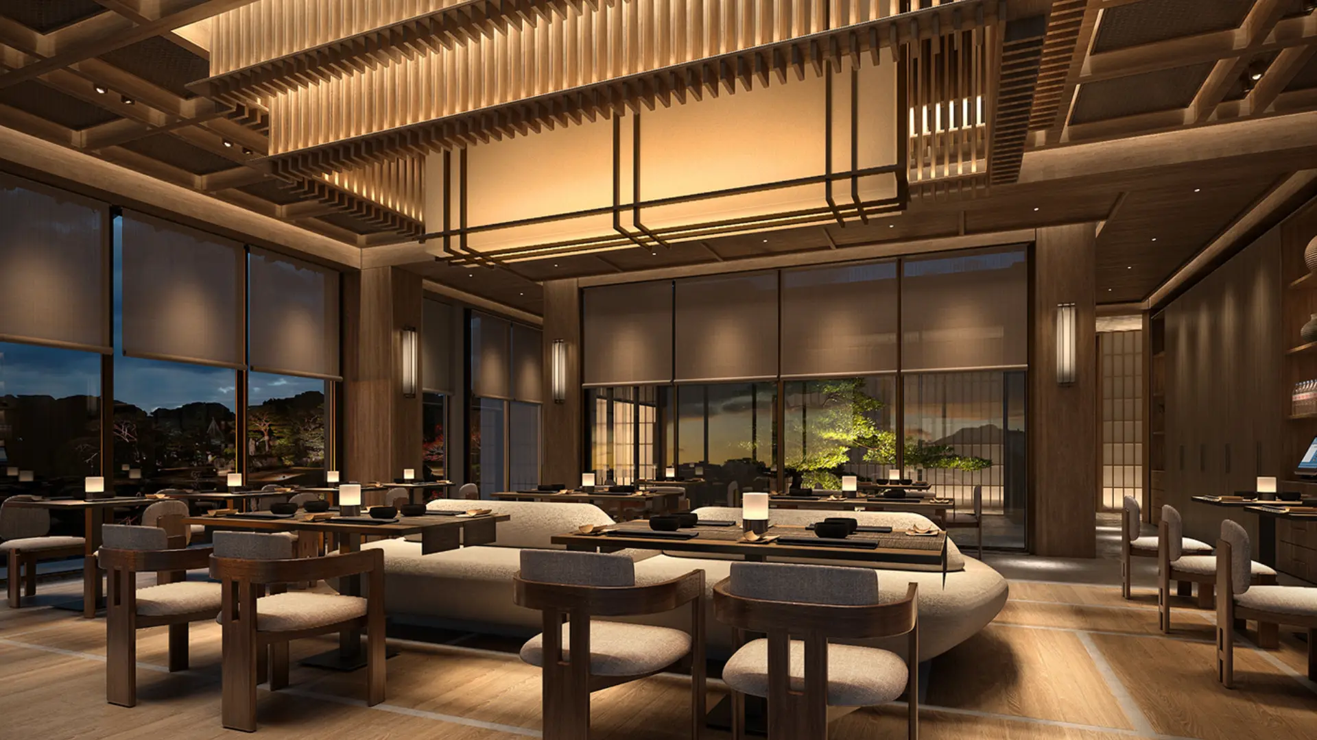 Đặc điểm độc đáo của thiết kế nhà hàng Nhật Bản là sự. Hòa quyện tinh tế giữa kiến trúc hiện đại và truyền thống. Dù là những chiếc bàn gỗ đặc trưng, rèm noren, đèn lồng hay những. Kết cấu khác về sàn, trần, tường, tất cả đều tạo nên một không gian kỳ diệu. Vừa mang bản sắc của đất nước mặt trời mọc, vừa đáp ứng được nhu cầu hiện đại, công năng cho thực khách. Sự đan xen giữa yếu tố truyền thống và hiện đại tạo nên. Một trải nghiệm độc đáo, làm cho nhà hàng trở thành không gian hấp dẫn. Không chỉ từ quan điểm thiết kế mà còn ở góc độ văn hóa.