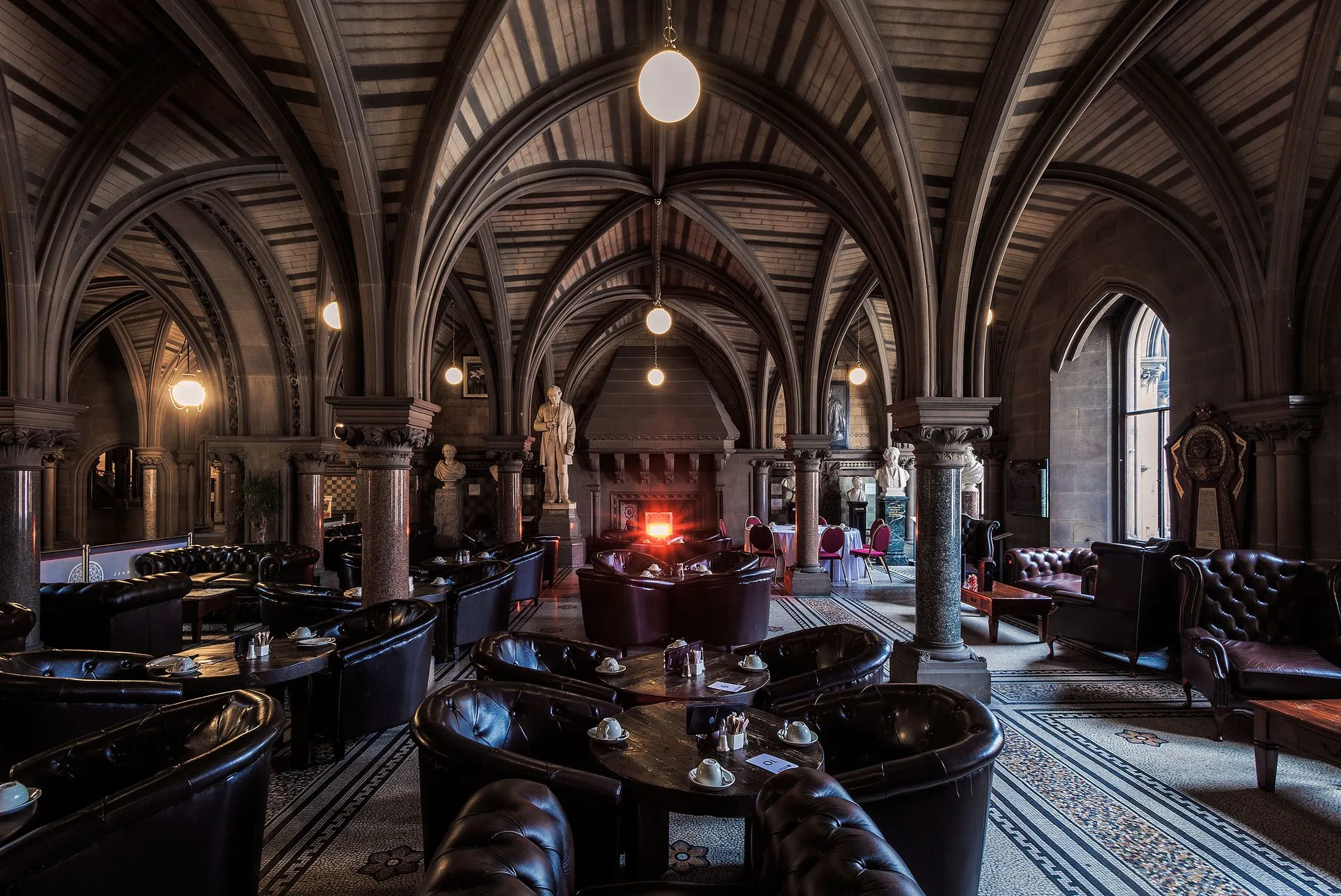 Phong cách Gothic trong nội thất là một trào lưu nghệ thuật và kiến trúc xuất phát từ thời kỳ Trung Cổ ở Châu Âu, thường được áp dụng trong việc thiết kế nhà hàng Pháp để tạo ra một không gian ấn tượng và huyền bí. Phần trần của nhà hàng sẽ được thiết kế cao vút với độ cong nhẹ tạo cảm giác về chiều sâu trong không gian, kết hợp với các cột trụ cao và mảnh ghép hoa văn chi tiết. Cửa sổ lớn thường được trang trí bằng kính màu và các hoa văn cửa sổ phức tạp, tạo ra một ánh sáng lãng mạn và có phần “ma mị” trong nhà hàng.